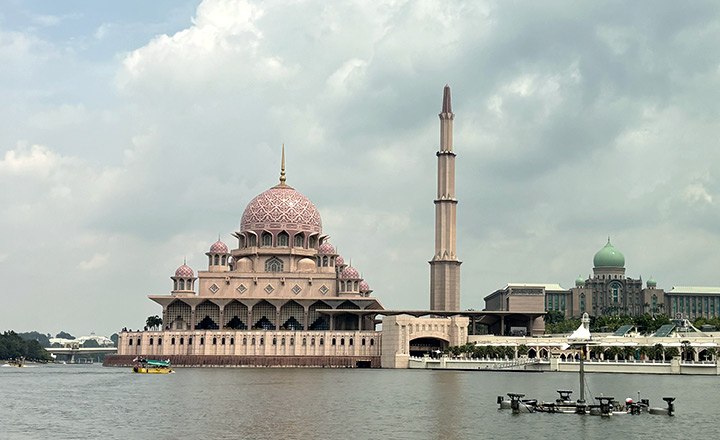 ROUSE弁理士との写真excursionではPutrajayaのモスクを訪問することができました。写真は、ボートクルーズから撮影したピンクモスク(正式名称はプトラモスク)です。